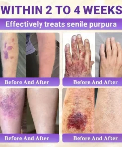 Tengo 62 años y a menudo me salen grandes manchas moradas en los muslos, incluso sin chocar con nada. Un ligero toque puede provocar sangrado. Mi médico dijo que es púrpura senil por piel envejecida y vasos sanguíneos débiles. Había probado muchas cremas antes, pero ninguna me ayudó realmente, así que no esperaba mucho.
