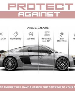Elimina instantáneamente cualquier rayón, caídas de pájaros, astillas de piedra, polvo de hierro (causado por la oxidación), manchas de agua, decoloración de la luz ultravioleta y cualquier contaminante de la pintura. - Revestimiento cerámico 9H