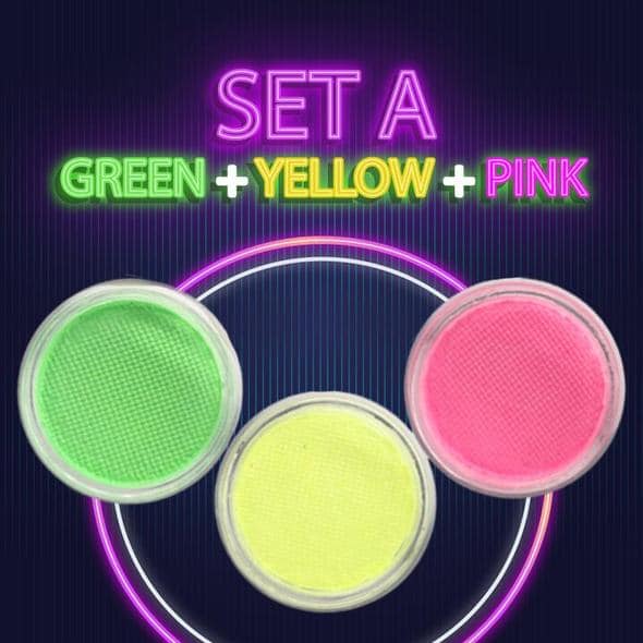 - Conjunto A (Amarillo + Rosa + Verde); Conjunto B (Azul + Morado + Verde)