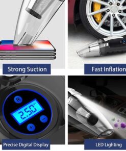 La potente aspiradora e inflador de neumáticos con compresor de aire y luz LED tiene las siguientes características del producto: