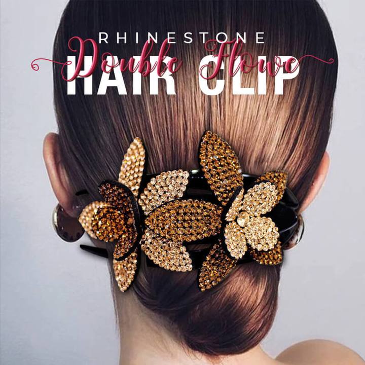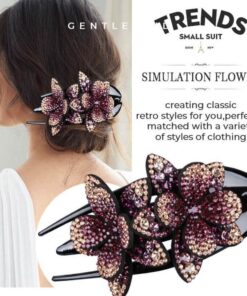Pinza para el pelo con doble flor y diamantes de imitación