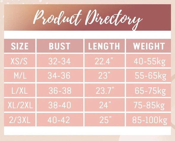 - Talla: XS/S, M/L, L,XL, XL/2XL, 2XL/3XL