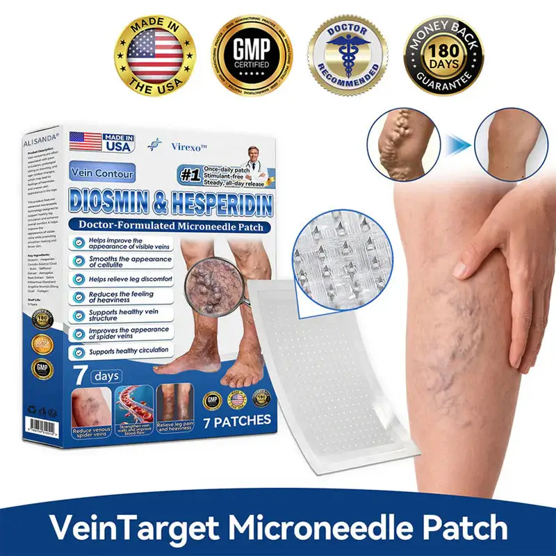 Virexo™ 𝑽𝗲𝗶𝙣 𝘾𝐨𝐧𝘁𝗼𝙪𝙧 𝙈𝙞𝐜𝐫𝒐𝒏𝒆𝗲𝗱𝗹𝙚 𝙋𝙖𝐭𝐜𝒉 𝒘𝒊𝘁𝗵 𝗔𝙙𝙫𝙖𝙣𝙘𝐞𝐝 𝐃𝒊𝒐𝒔𝗺𝙞𝐧 & 𝑯𝒆𝘀𝗽𝗲𝙧𝙞𝙙𝙞𝐧 𝐃𝒆𝒍𝒊𝒗𝗲𝗿𝙮. Es el primer parche de microagujas botánico alpino que recibe el registro de la FDA y la certificación GMP, y está clínicamente probado que logra una tasa de éxito del 96 % en el tratamiento domiciliario de la insuficiencia venosa crónica. Su innovador sistema de administración transdérmica penetra hasta 100 veces más profundamente que las cremas tópicas, logrando una reducción visible de las venas en tan solo 7 días. Elimine la necesidad de una cirugía costosa y restablezca naturalmente una circulación saludable, todo desde la comodidad de su hogar.